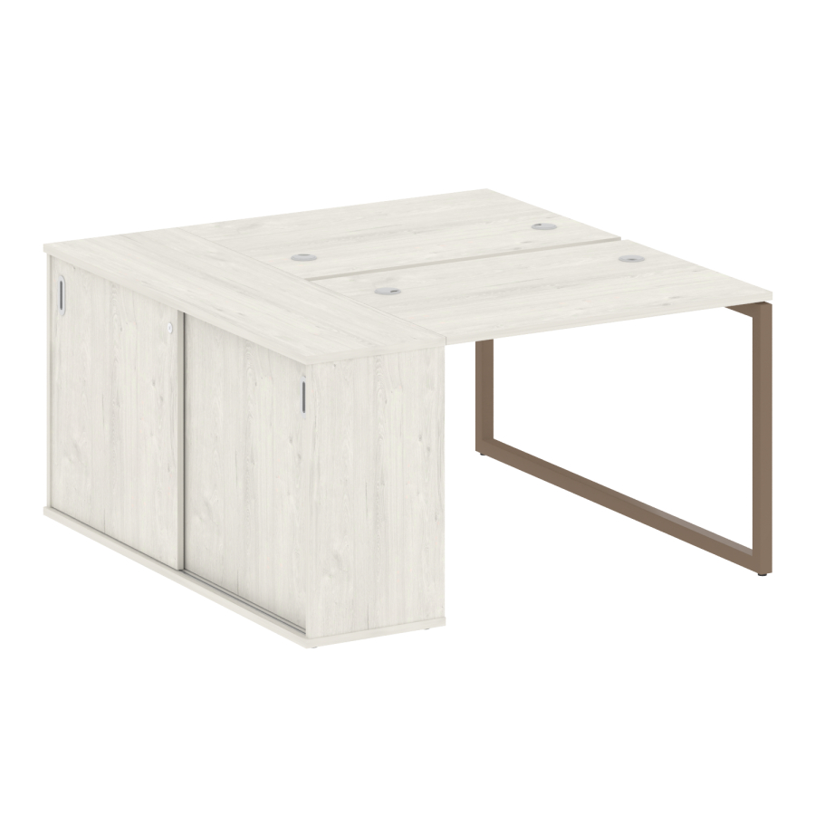 Столешницы имеют отверстия с пластиковыми заглушками кабель-канала серого цвета.