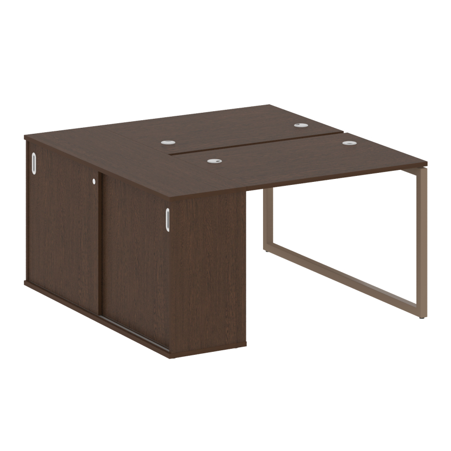 Столешницы имеют отверстия с пластиковыми заглушками кабель-канала серого цвета.