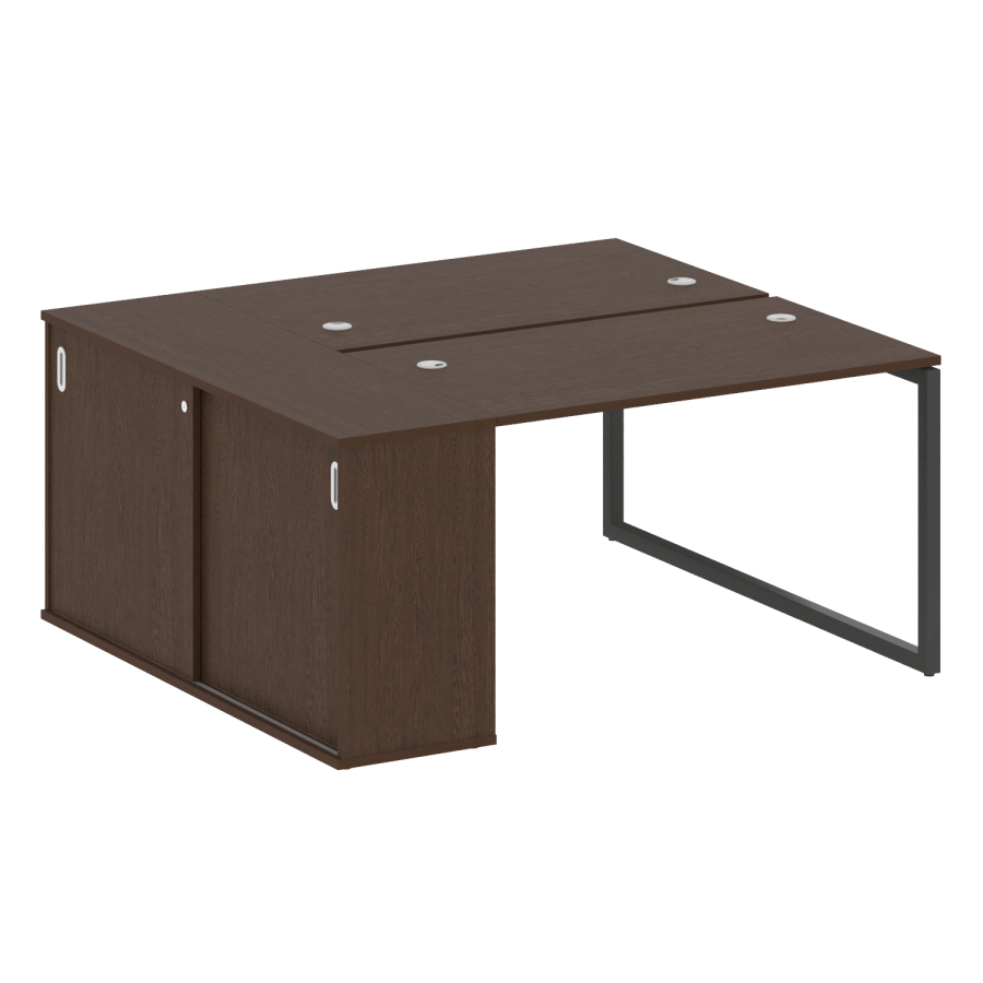 Столешницы имеют отверстия с пластиковыми заглушками кабель-канала серого цвета.