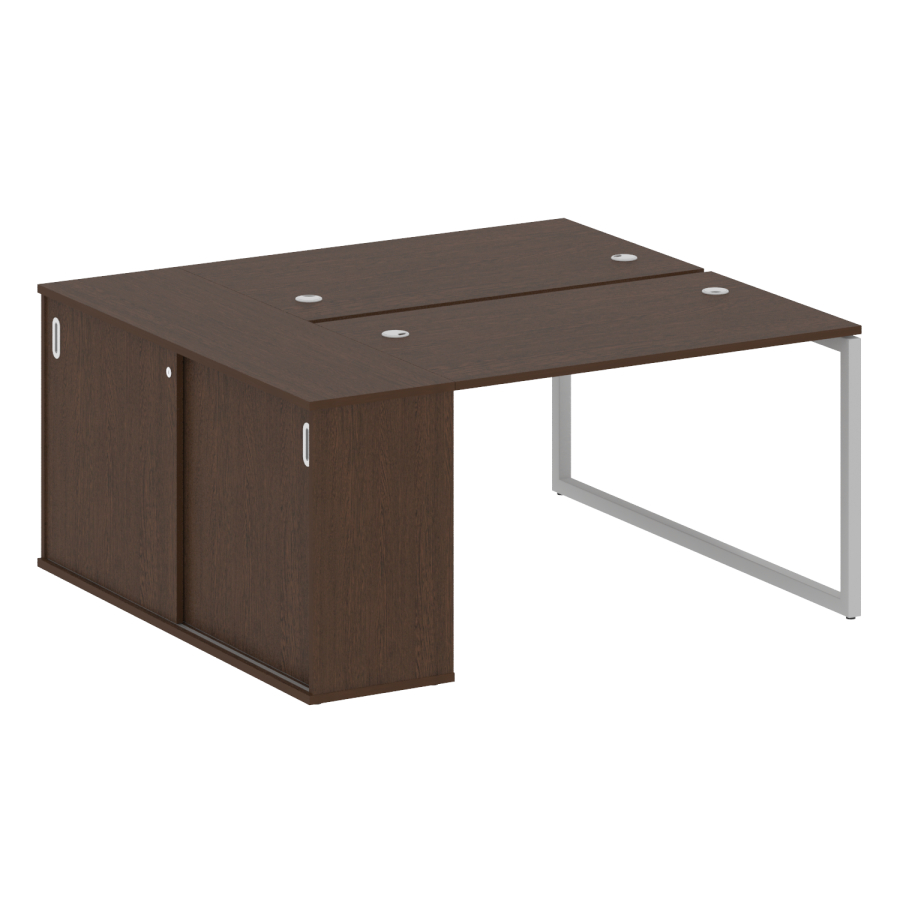 Столешницы имеют отверстия с пластиковыми заглушками кабель-канала серого цвета.