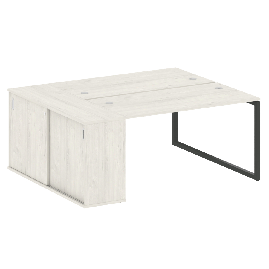 Столешницы имеют отверстия с пластиковыми заглушками кабель-канала серого цвета.