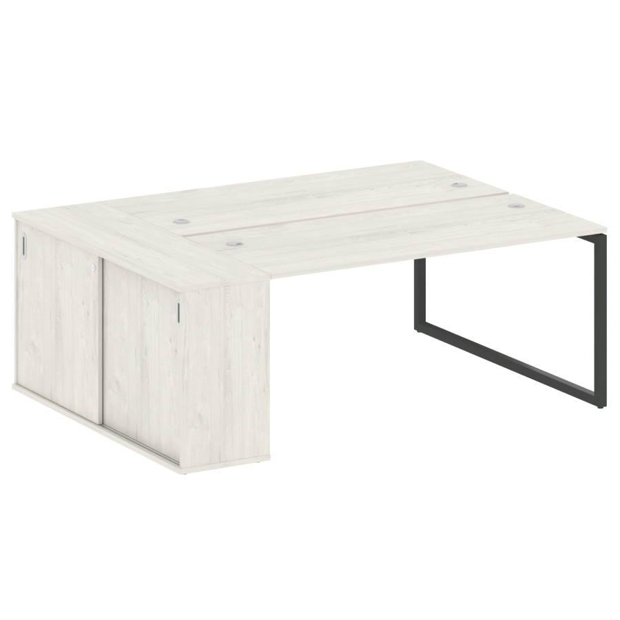 Столешницы имеют отверстия с пластиковыми заглушками кабель-канала серого цвета.