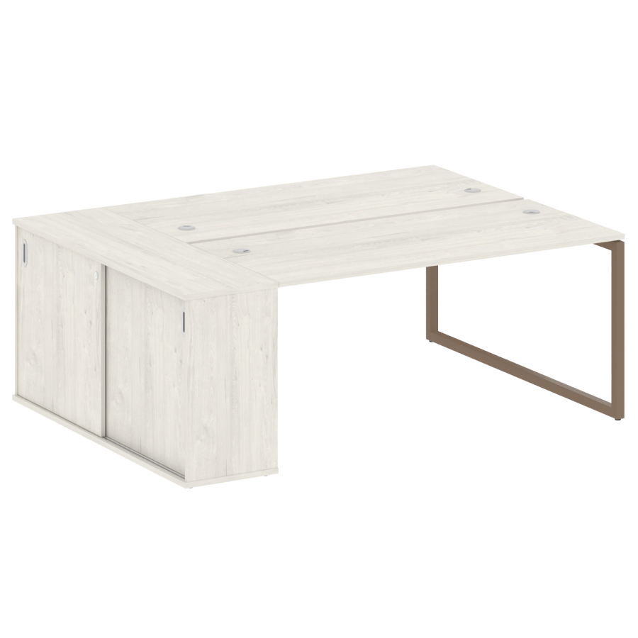 Столешницы имеют отверстия с пластиковыми заглушками кабель-канала серого цвета.