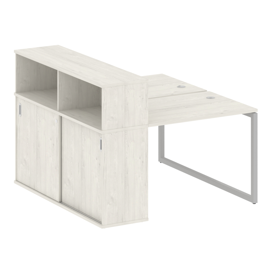 Столешницы имеют отверстия с пластиковыми заглушками кабель-канала серого цвета.
