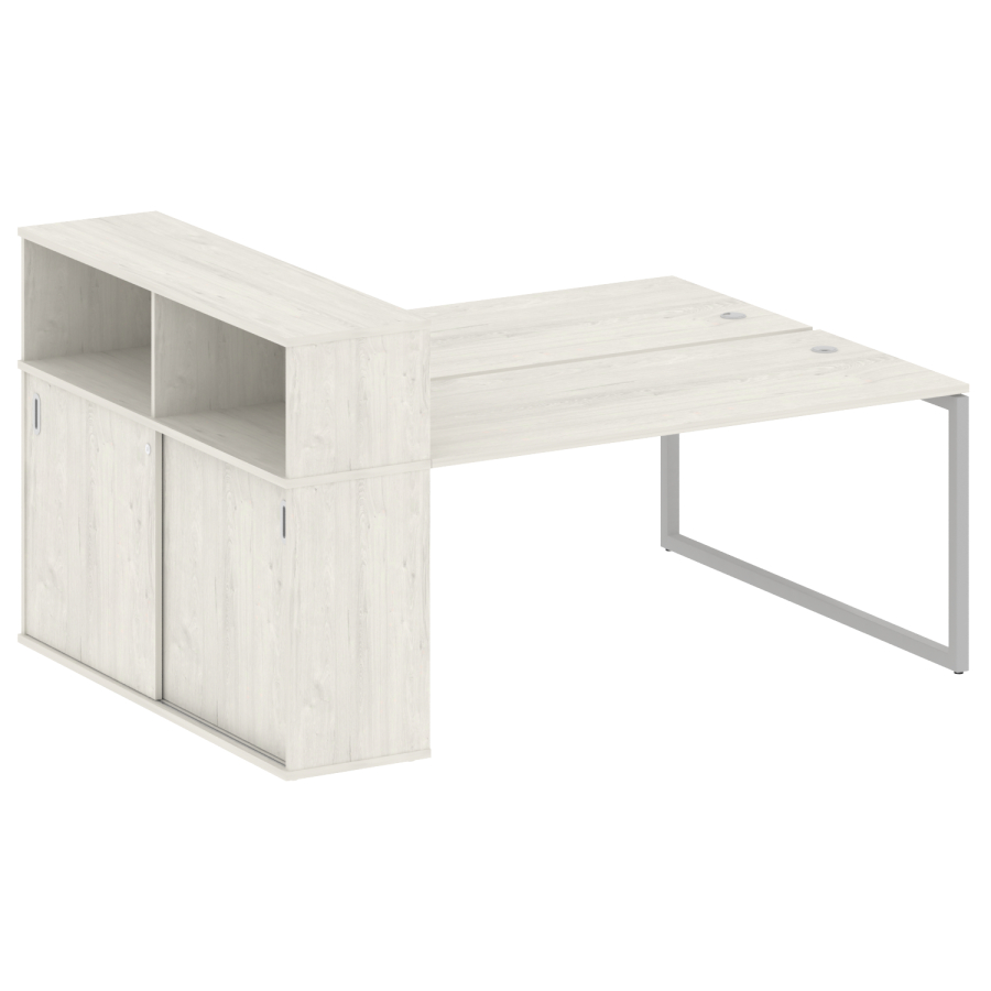 Столешницы имеют отверстия с пластиковыми заглушками кабель-канала серого цвета.