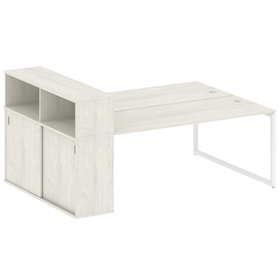Столешницы имеют отверстия с пластиковыми заглушками кабель-канала серого цвета.