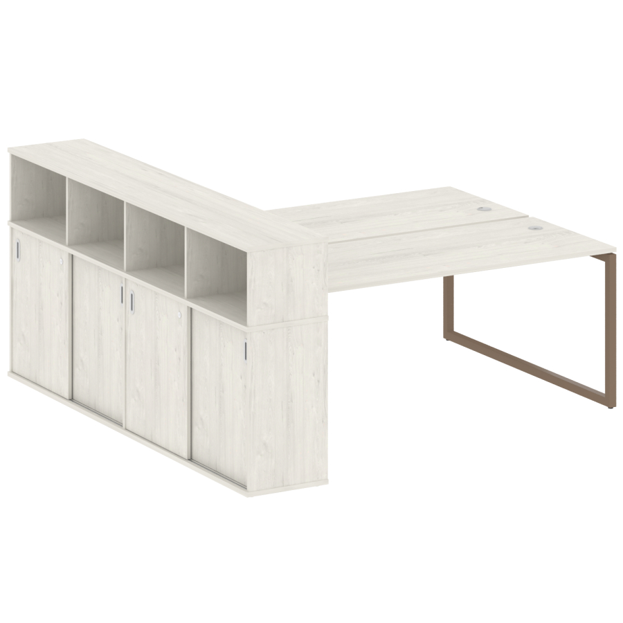 Столешницы имеют отверстия с пластиковыми заглушками кабель-канала серого цвета.