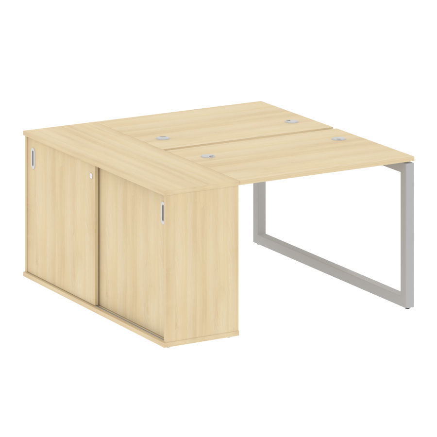 Столешницы имеют отверстия с пластиковыми заглушками кабель-канала серого цвета.