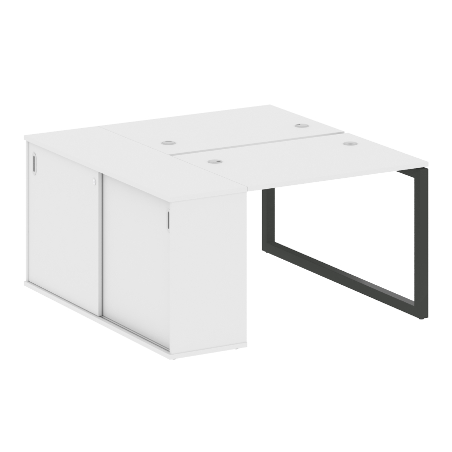 Столешницы имеют отверстия с пластиковыми заглушками кабель-канала серого цвета.