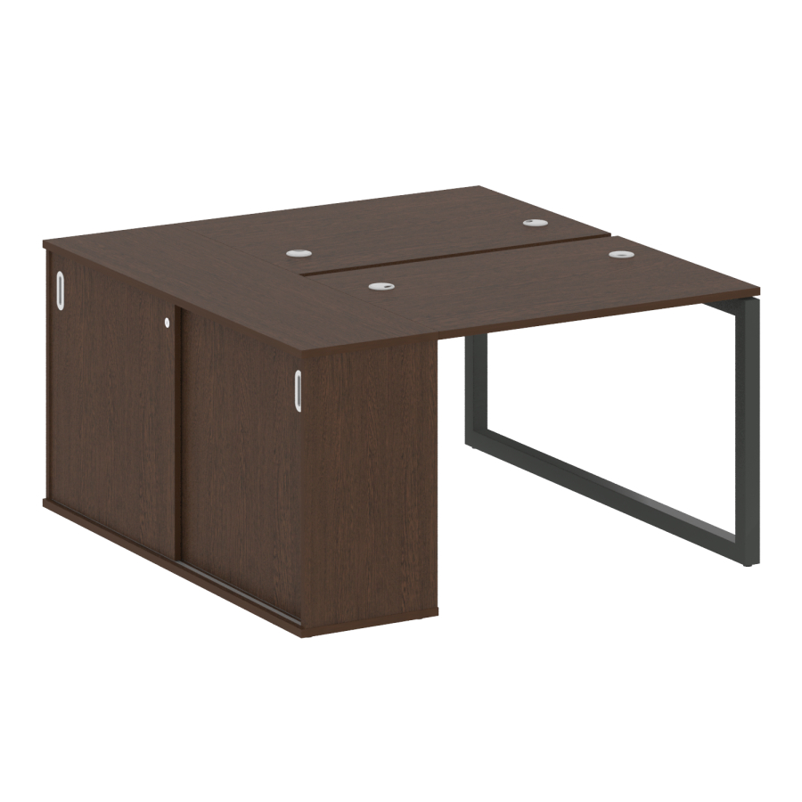 Столешницы имеют отверстия с пластиковыми заглушками кабель-канала серого цвета.