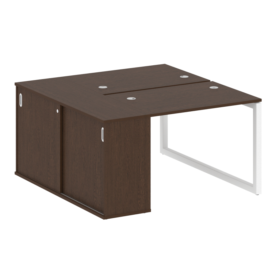 Столешницы имеют отверстия с пластиковыми заглушками кабель-канала серого цвета.
