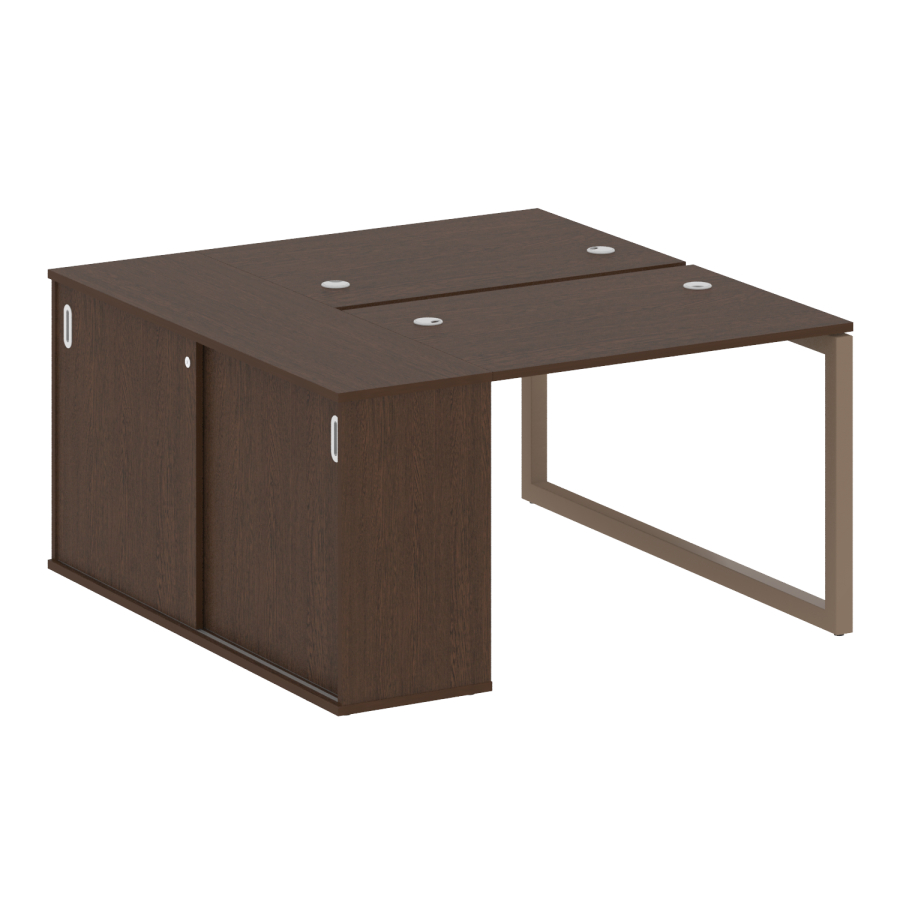Столешницы имеют отверстия с пластиковыми заглушками кабель-канала серого цвета.