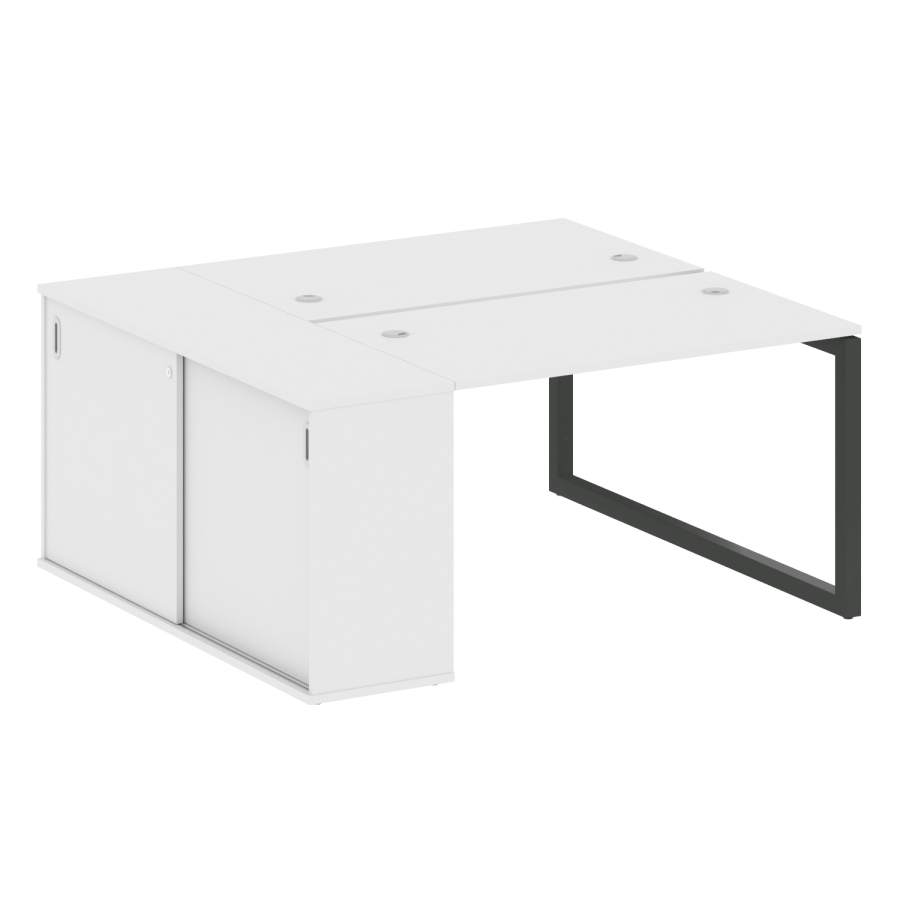 Столешницы имеют отверстия с пластиковыми заглушками кабель-канала серого цвета.