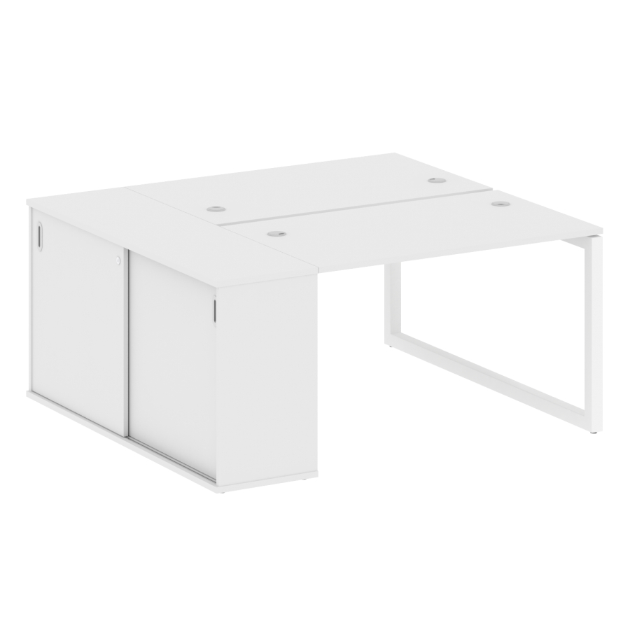 Столешницы имеют отверстия с пластиковыми заглушками кабель-канала серого цвета.