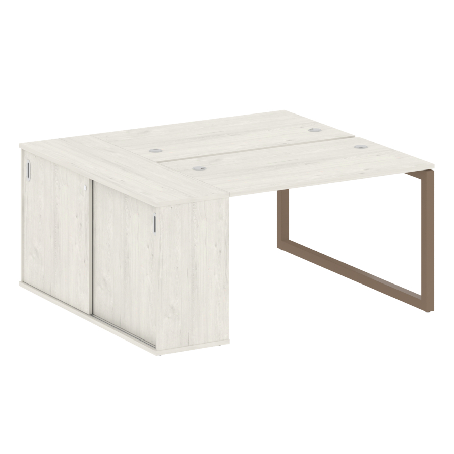 Столешницы имеют отверстия с пластиковыми заглушками кабель-канала серого цвета.