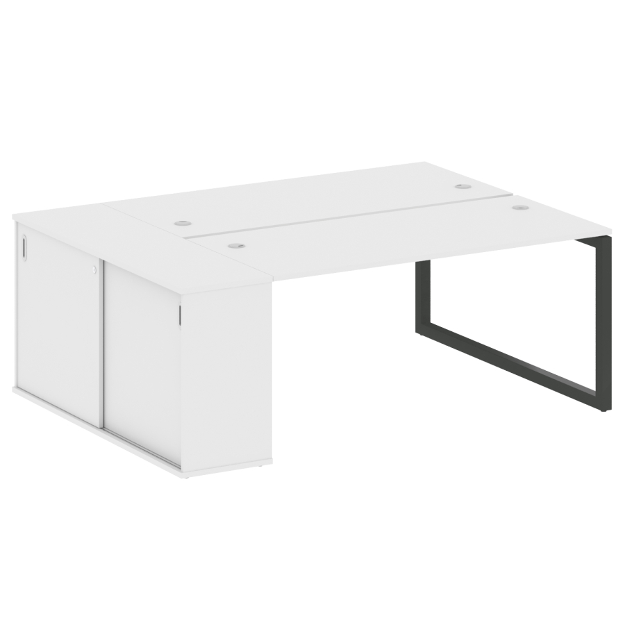 Столешницы имеют отверстия с пластиковыми заглушками кабель-канала серого цвета.