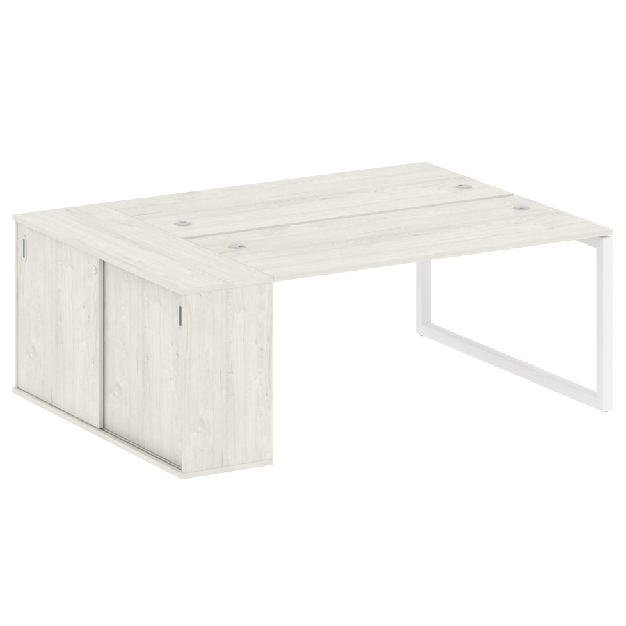 Столешницы имеют отверстия с пластиковыми заглушками кабель-канала серого цвета.