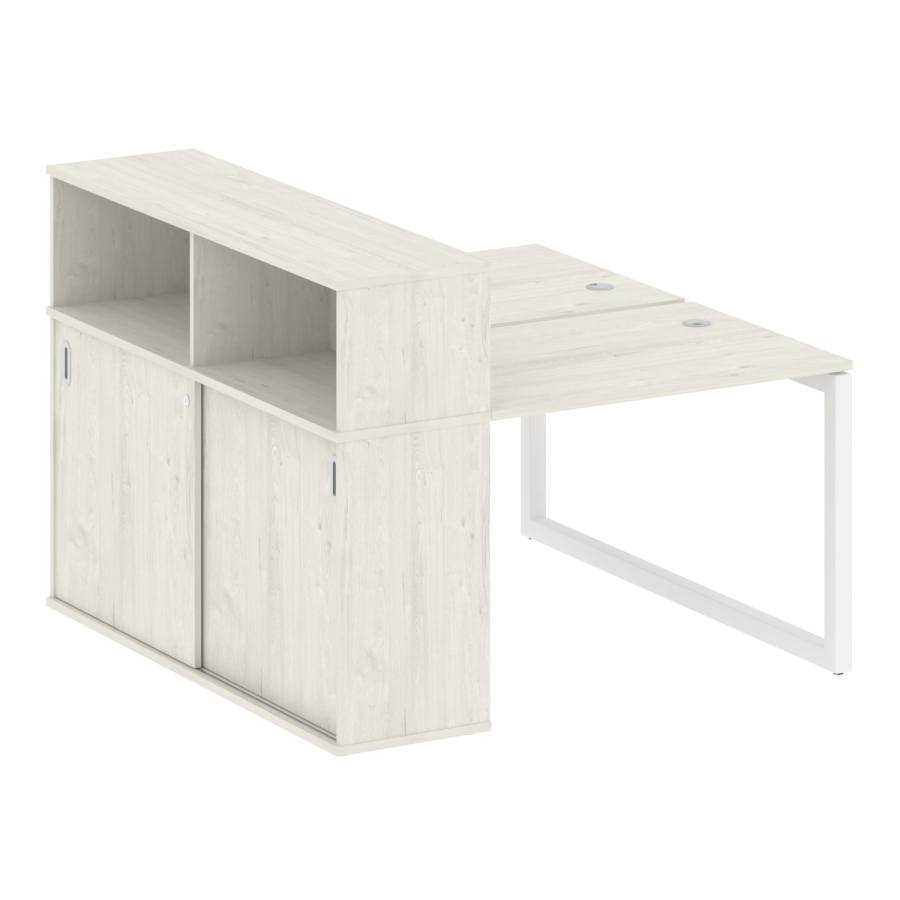 Столешницы имеют отверстия с пластиковыми заглушками кабель-канала серого цвета.