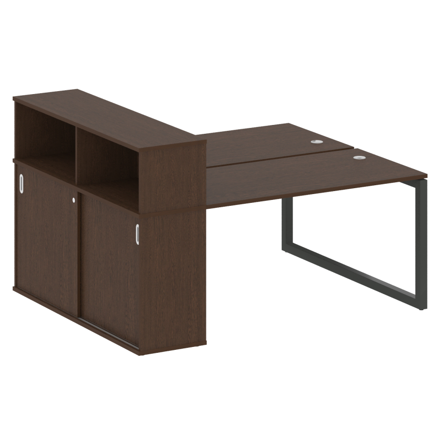 Столешницы имеют отверстия с пластиковыми заглушками кабель-канала серого цвета.