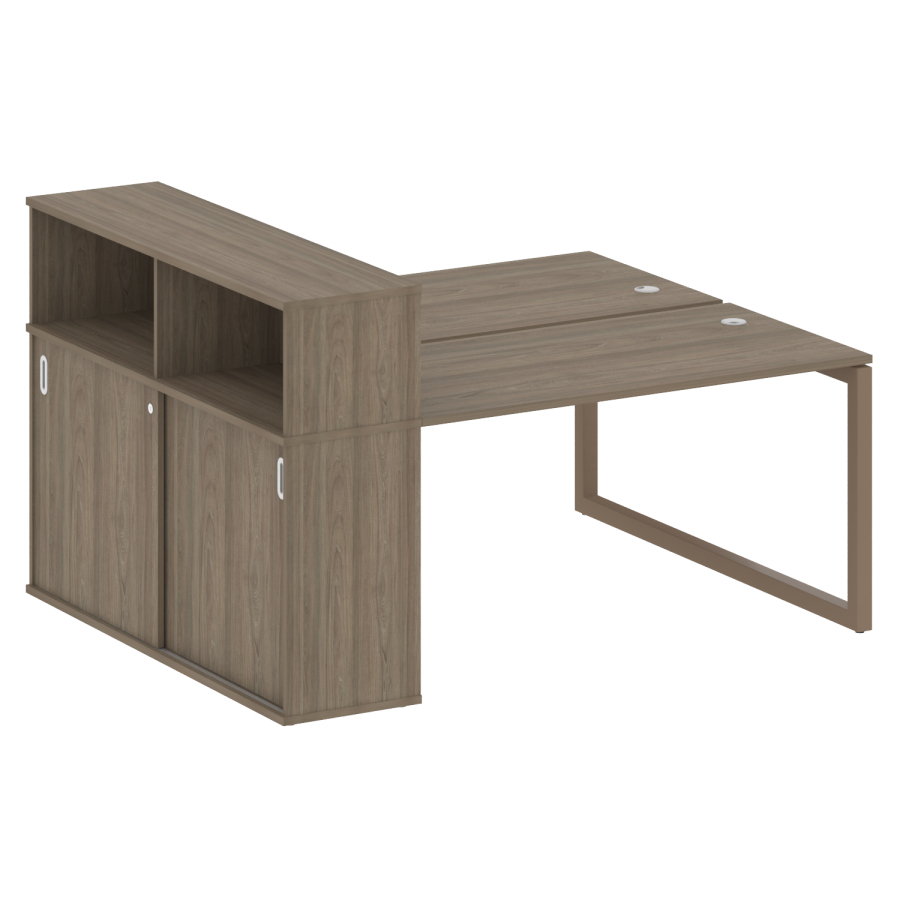 Столешницы имеют отверстия с пластиковыми заглушками кабель-канала серого цвета.