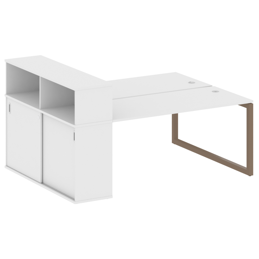 Столешницы имеют отверстия с пластиковыми заглушками кабель-канала серого цвета.