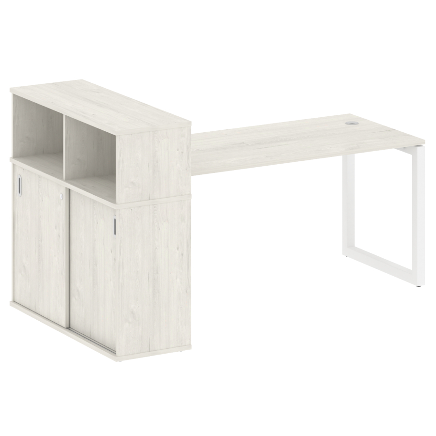 Столешницы имеют отверстия с пластиковыми заглушками кабель-канала серого цвета.