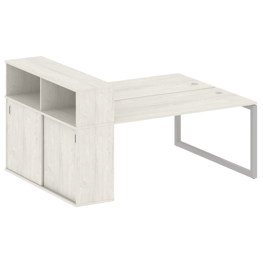 Столешницы имеют отверстия с пластиковыми заглушками кабель-канала серого цвета.