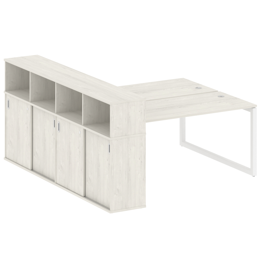 Столешницы имеют отверстия с пластиковыми заглушками кабель-канала серого цвета.
