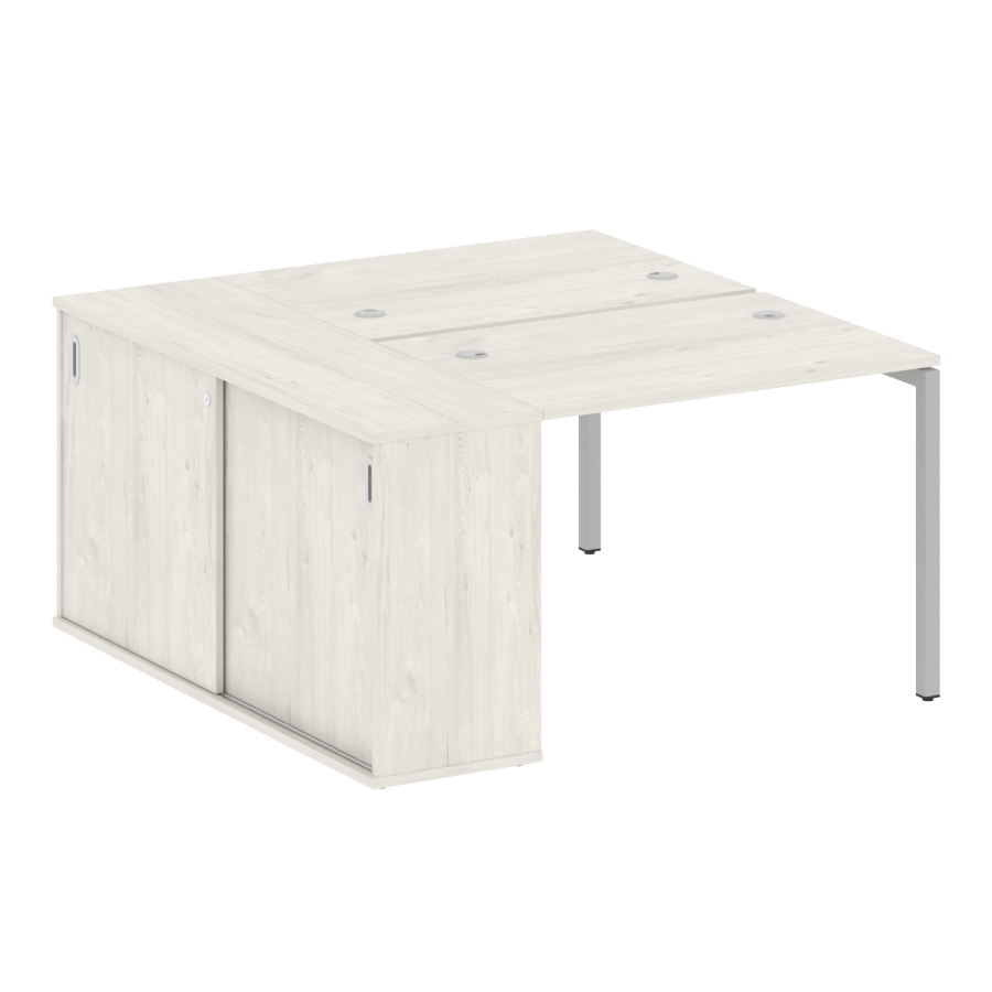 Столешницы имеют отверстия с пластиковыми заглушками кабель-канала серого цвета.