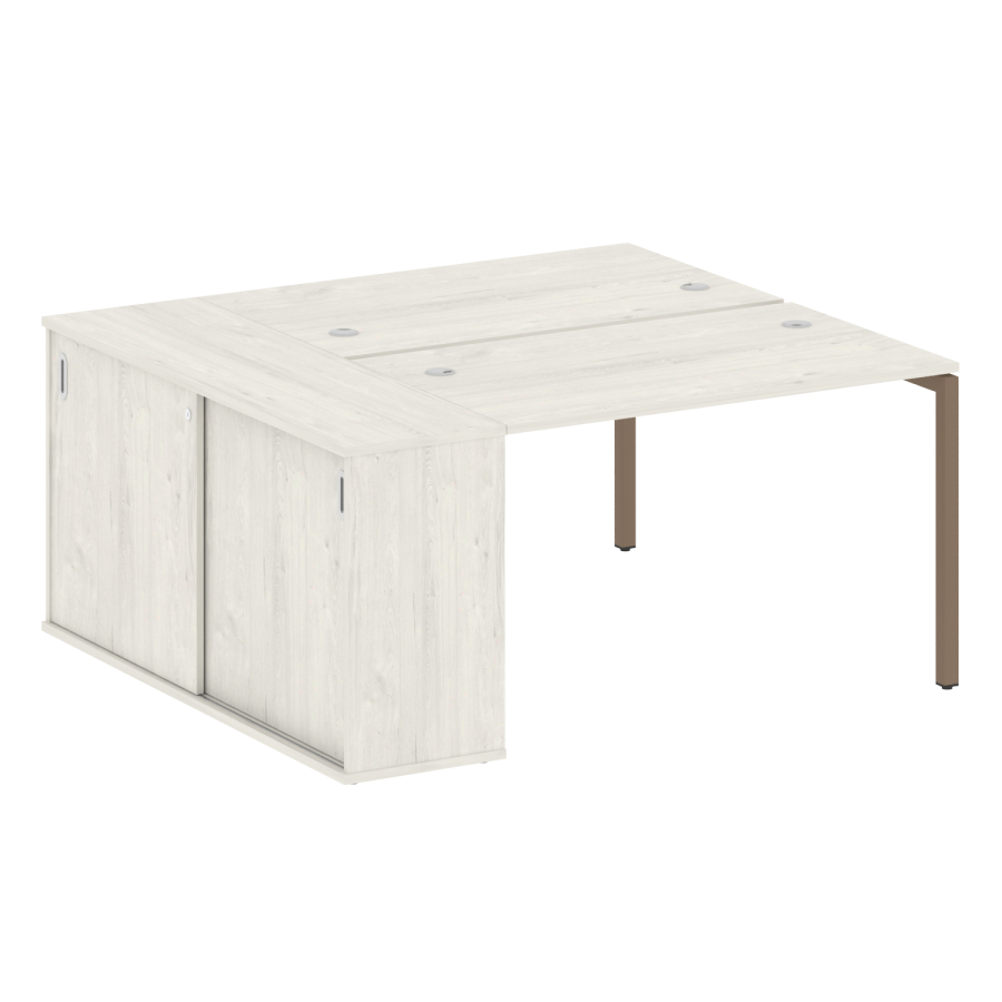 Столешницы имеют отверстия с пластиковыми заглушками кабель-канала серого цвета.