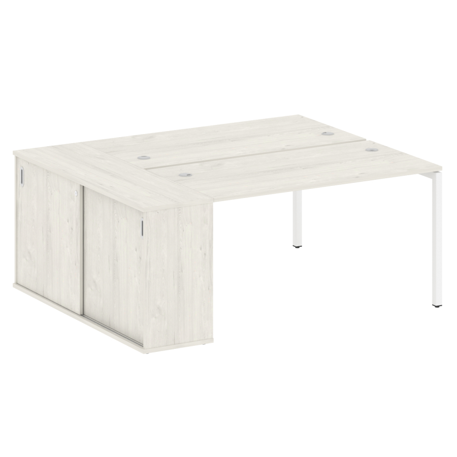 Столешницы имеют отверстия с пластиковыми заглушками кабель-канала серого цвета.