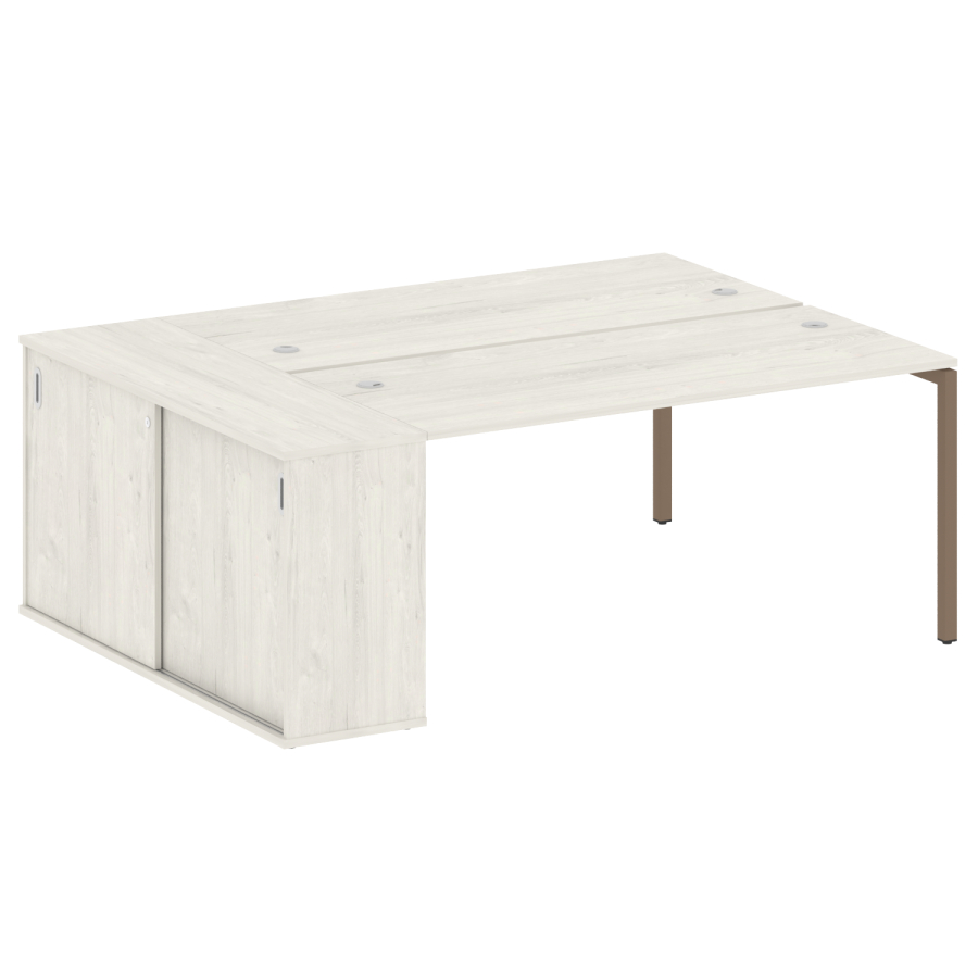 Столешницы имеют отверстия с пластиковыми заглушками кабель-канала серого цвета.