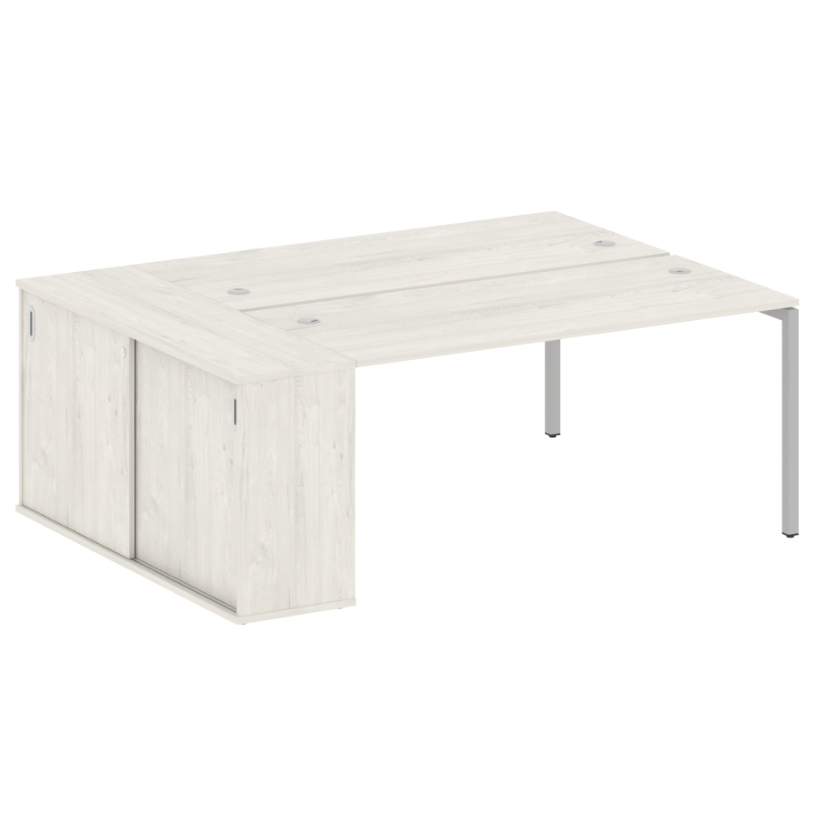 Столешницы имеют отверстия с пластиковыми заглушками кабель-канала серого цвета.