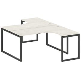 Столешницы имеют отверстия с пластиковыми заглушками кабель-канала серого цвета.