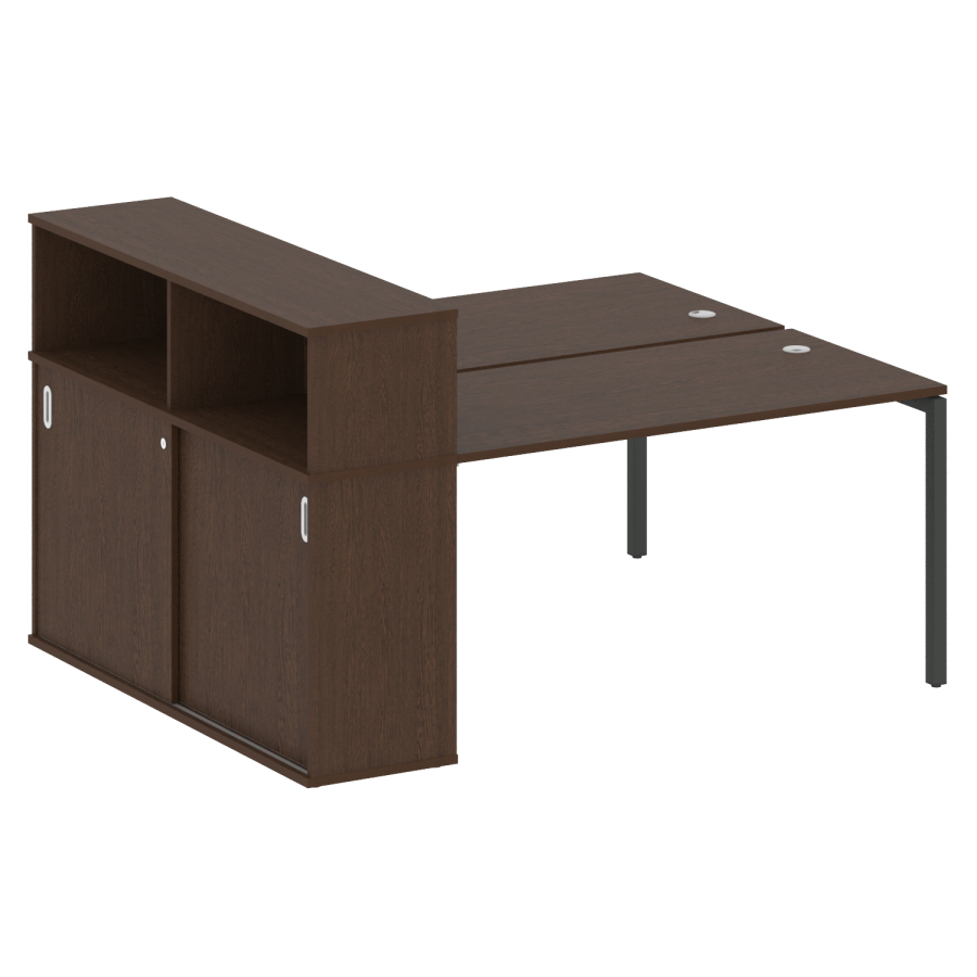 Столешницы имеют отверстия с пластиковыми заглушками кабель-канала серого цвета.