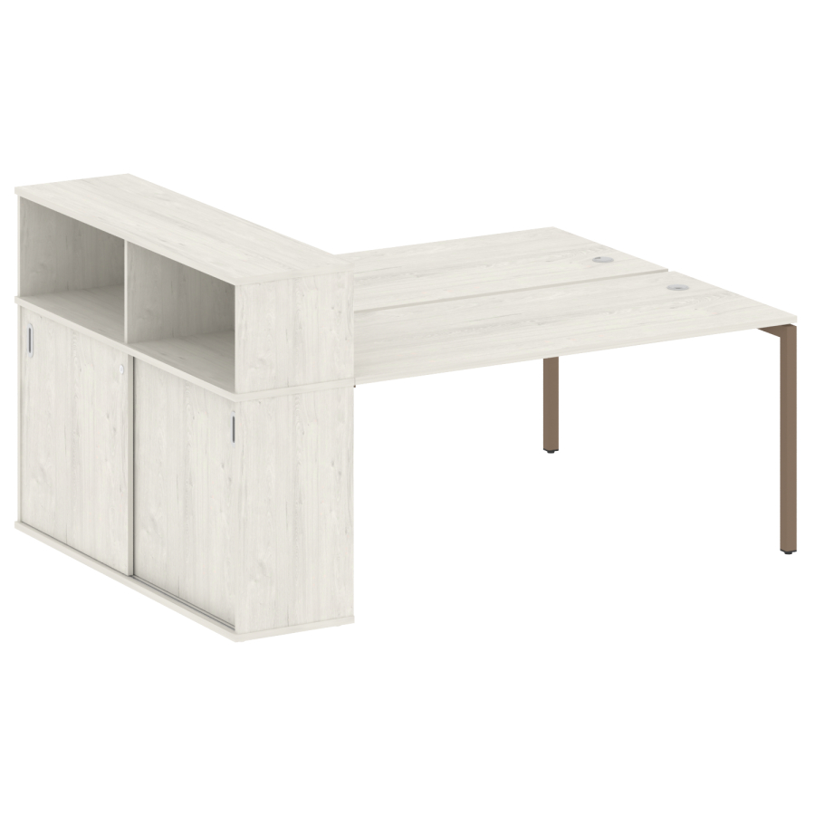 Столешницы имеют отверстия с пластиковыми заглушками кабель-канала серого цвета.