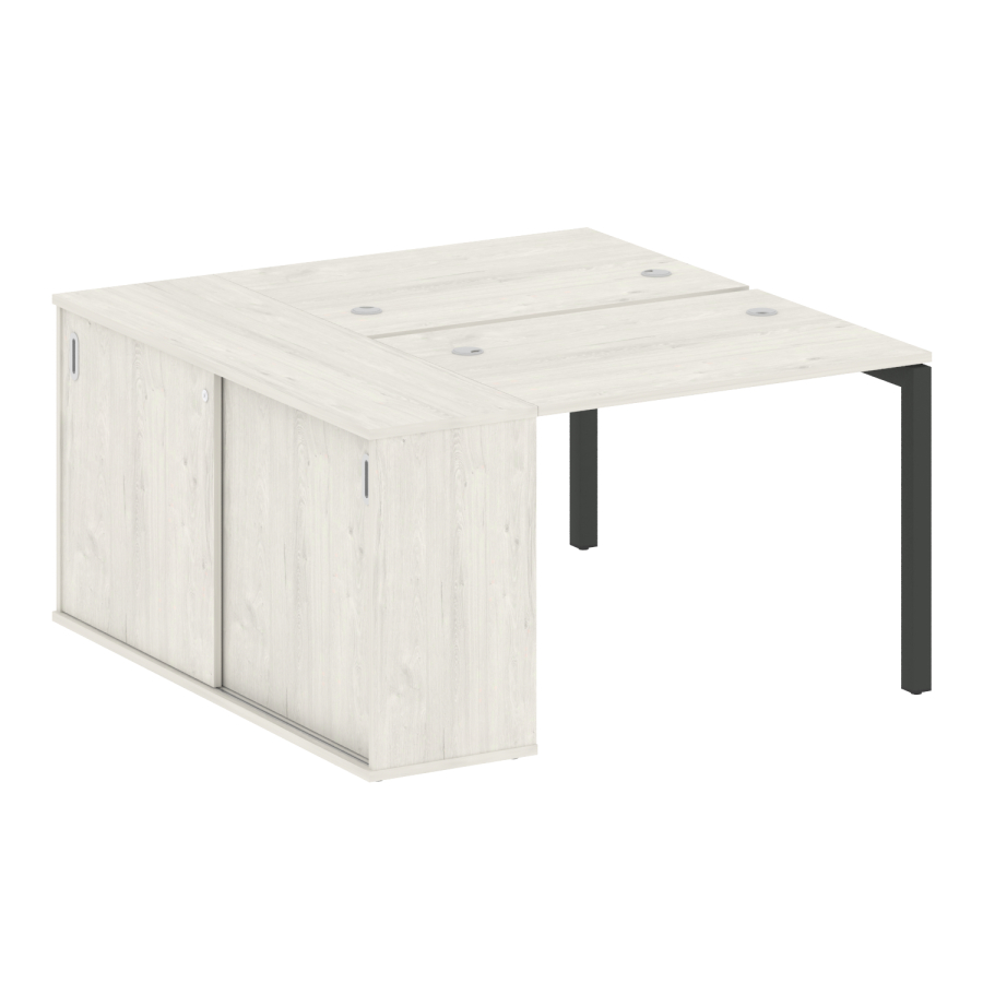 Столешницы имеют отверстия с пластиковыми заглушками кабель-канала серого цвета.
