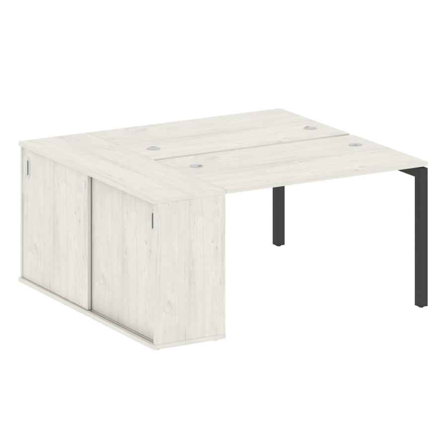 Столешницы имеют отверстия с пластиковыми заглушками кабель-канала серого цвета.