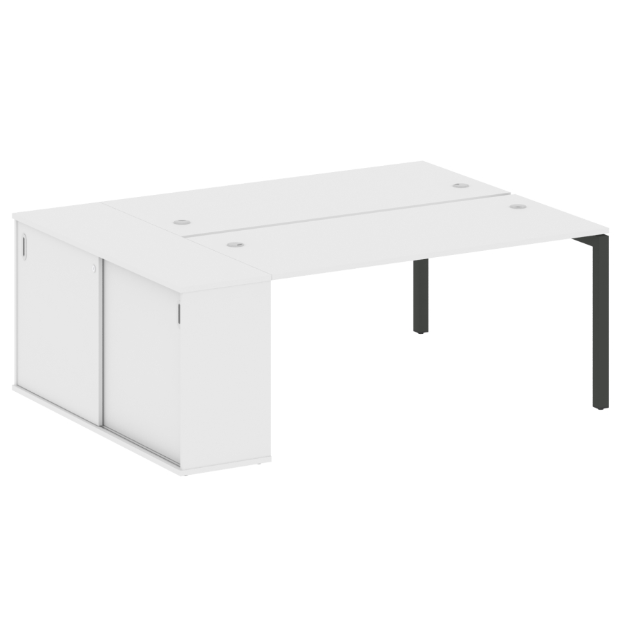 Столешницы имеют отверстия с пластиковыми заглушками кабель-канала серого цвета.