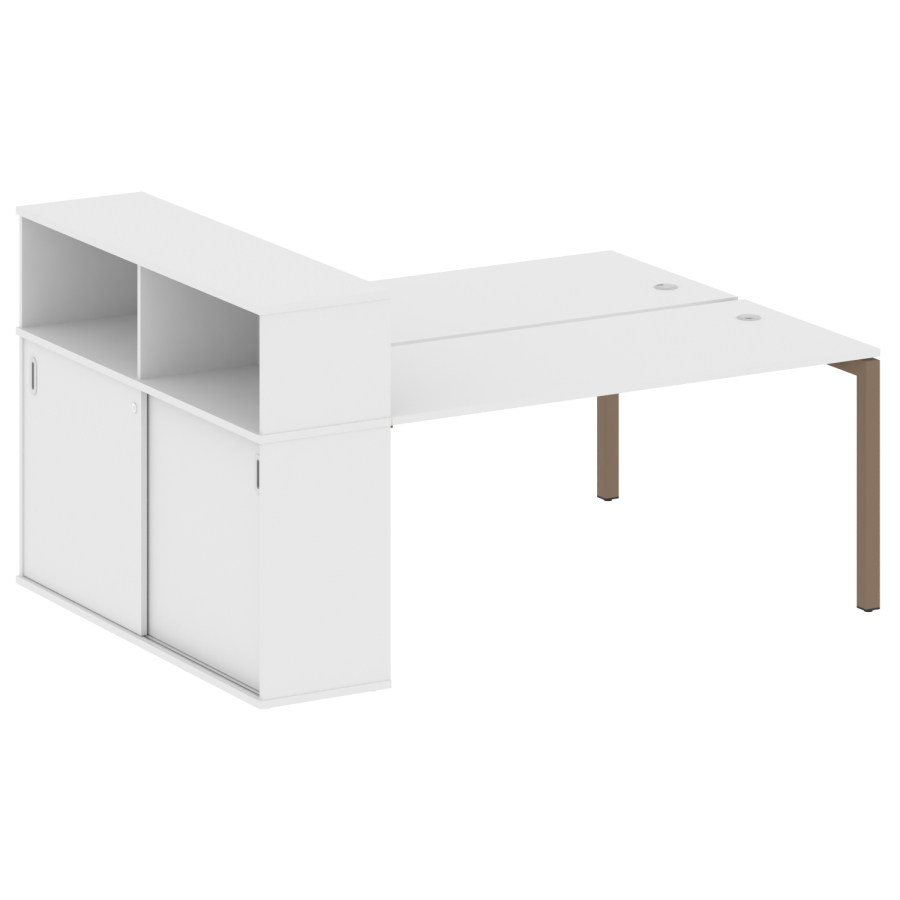 Столешницы имеют отверстия с пластиковыми заглушками кабель-канала серого цвета.