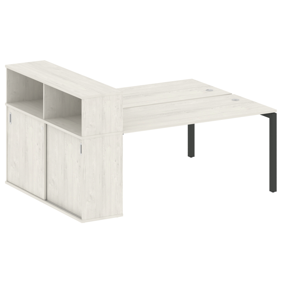 Столешницы имеют отверстия с пластиковыми заглушками кабель-канала серого цвета.