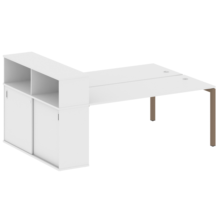 Столешницы имеют отверстия с пластиковыми заглушками кабель-канала серого цвета.
