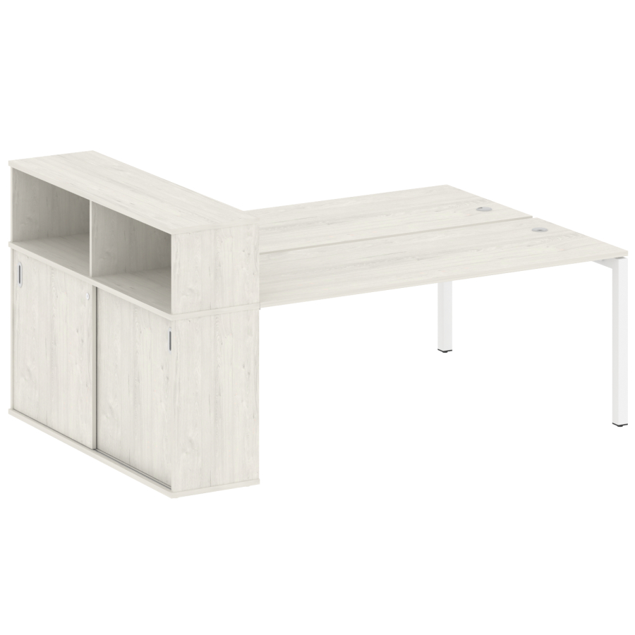 Metal System Quattro Р. ст. с шкафом-купе на П-образном м/к 50БП.РС-СШК-2.5 Т Дуб наварра/Белый металл 2210*1475*1098