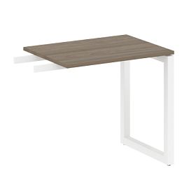 Столешницы имеют отверстия с пластиковыми заглушками кабель-канала серого цвета.