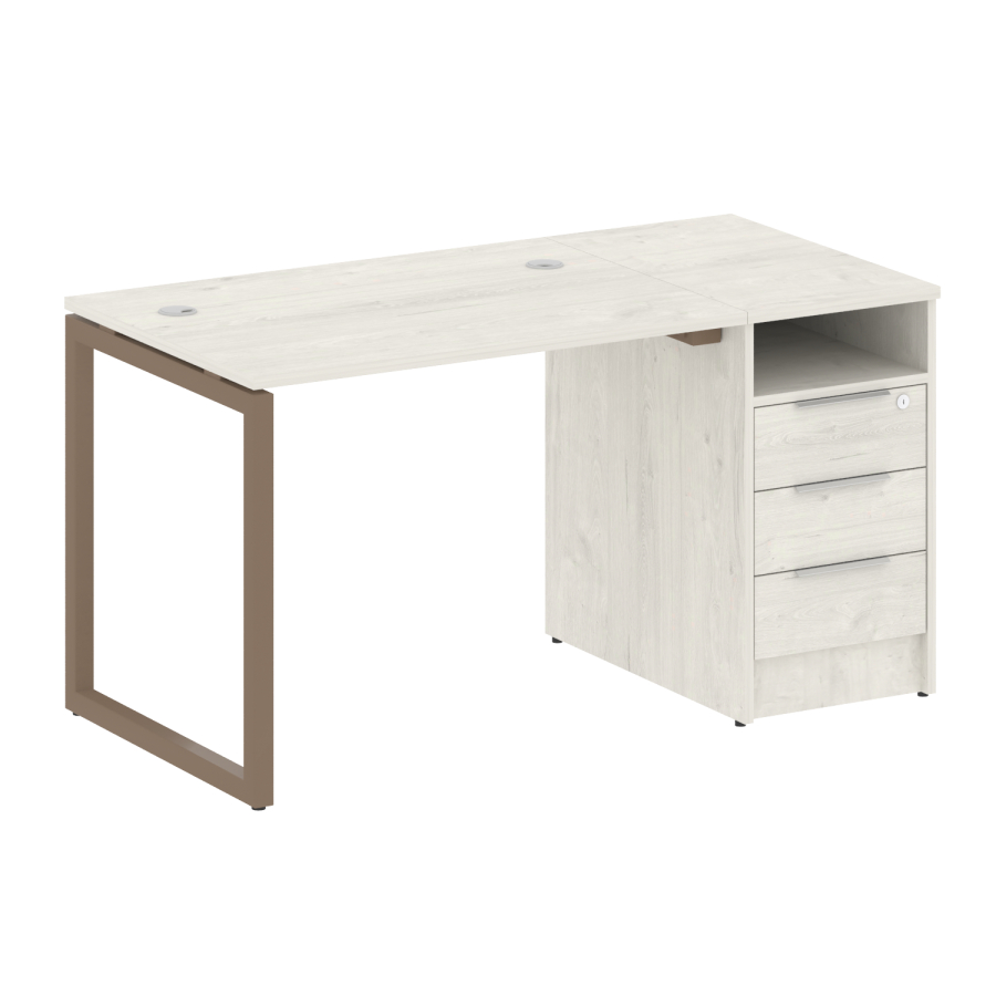 Столешницы имеют отверстия с пластиковыми заглушками кабель-канала серого цвета.