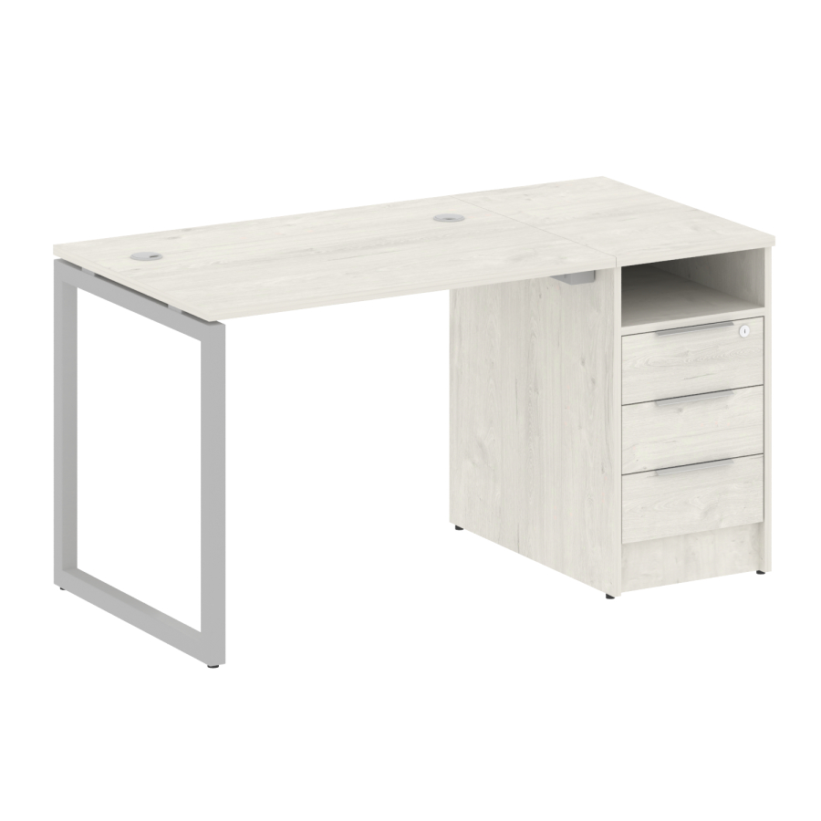 Столешницы имеют отверстия с пластиковыми заглушками кабель-канала серого цвета.