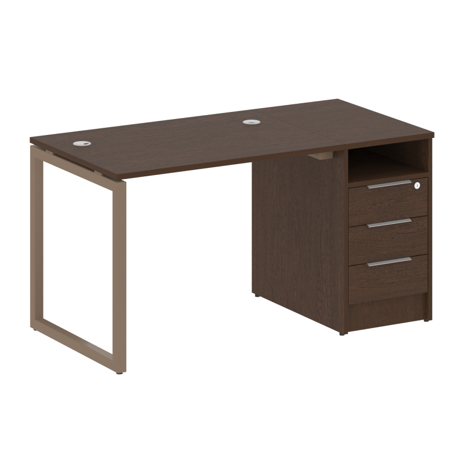 Столешницы имеют отверстия с пластиковыми заглушками кабель-канала серого цвета.