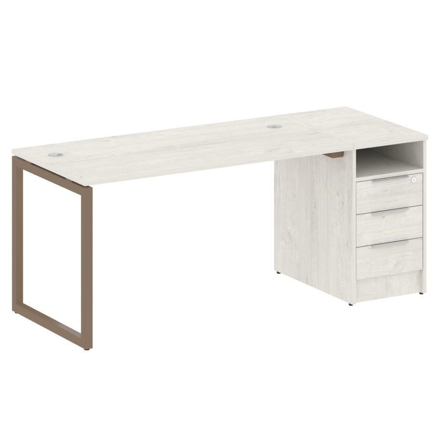 Столешницы имеют отверстия с пластиковыми заглушками кабель-канала серого цвета.