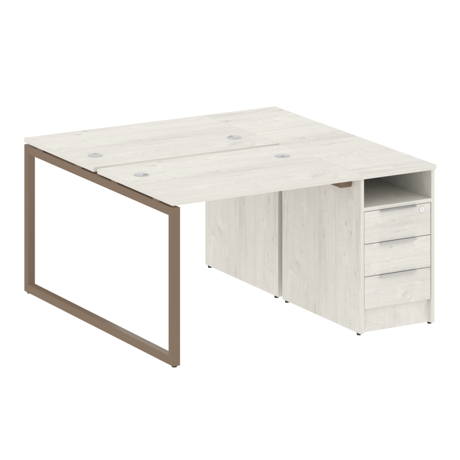 Столешницы имеют отверстия с пластиковыми заглушками кабель-канала серого цвета.