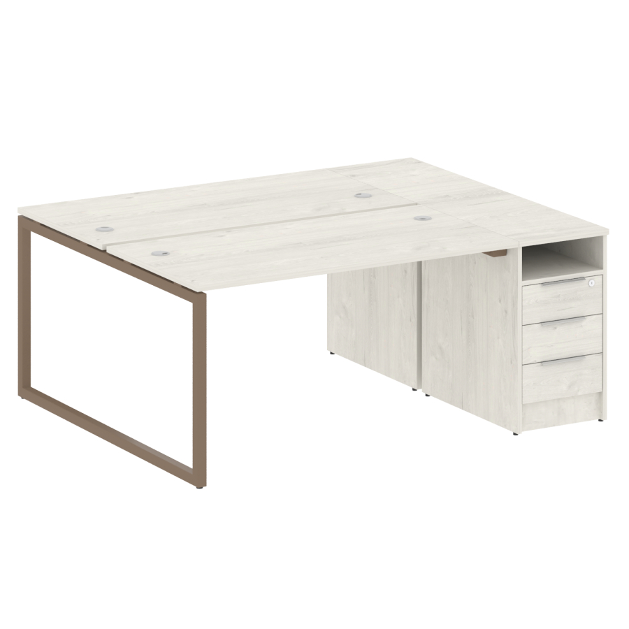 Столешницы имеют отверстия с пластиковыми заглушками кабель-канала серого цвета.